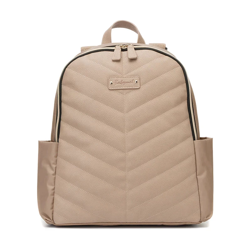 Parent in style with your Gabby backpack. Spacious, durable, and most of all – stylish. The vegan leather front panel features a chevron quilt stitch detail to give this changing bag a contemporary look. With a wide and secure double zipped closure for worry free days out with your family.