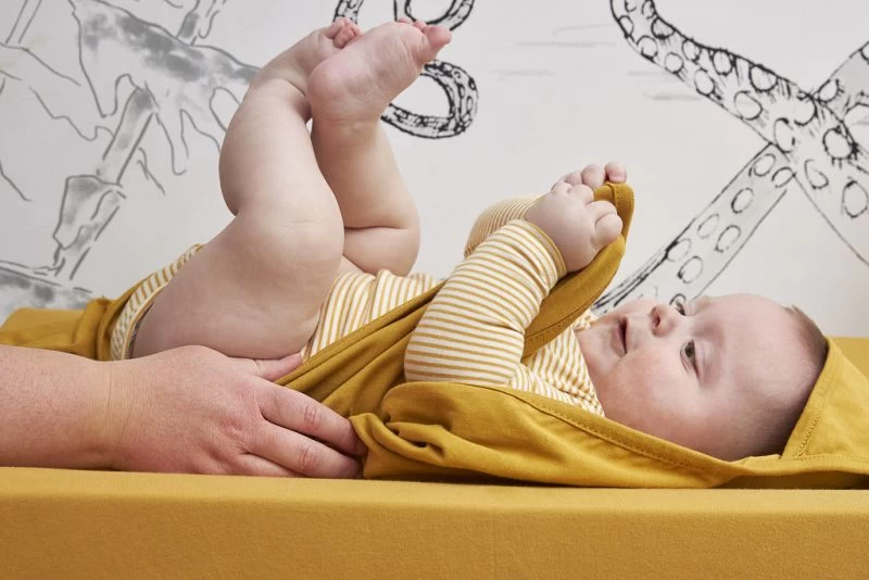 The Meyco bath cape has 2 layers of soft cotton. The bath cape with hood is nice to wrap your child in after showering and swimming or when you are relaxing on the couch. The bath cape is extra long, which makes it easy to fold back over your child so he or she is not directly exposed. The bath cape has a gap so you could also use it in the car seat.