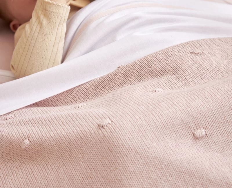 Under this Meyco Baby Baby Blanket Mini Knots your little one will sleep well. The blanket is made of wonderfully soft cotton. Because the heat is regulated by the fabric, your child does not get too hot or too cold in bed. The small 3D studs are subtle and give a contemporary and luxurious appearance. We also have a changing pad cover sin the same fabric, playpen mattresses, storage baskets and knitted wipe pouches. Because of the big In a variety of colours, the Mini Knots baby blankets are the perfect combination with our complete Meyco Baby collection.