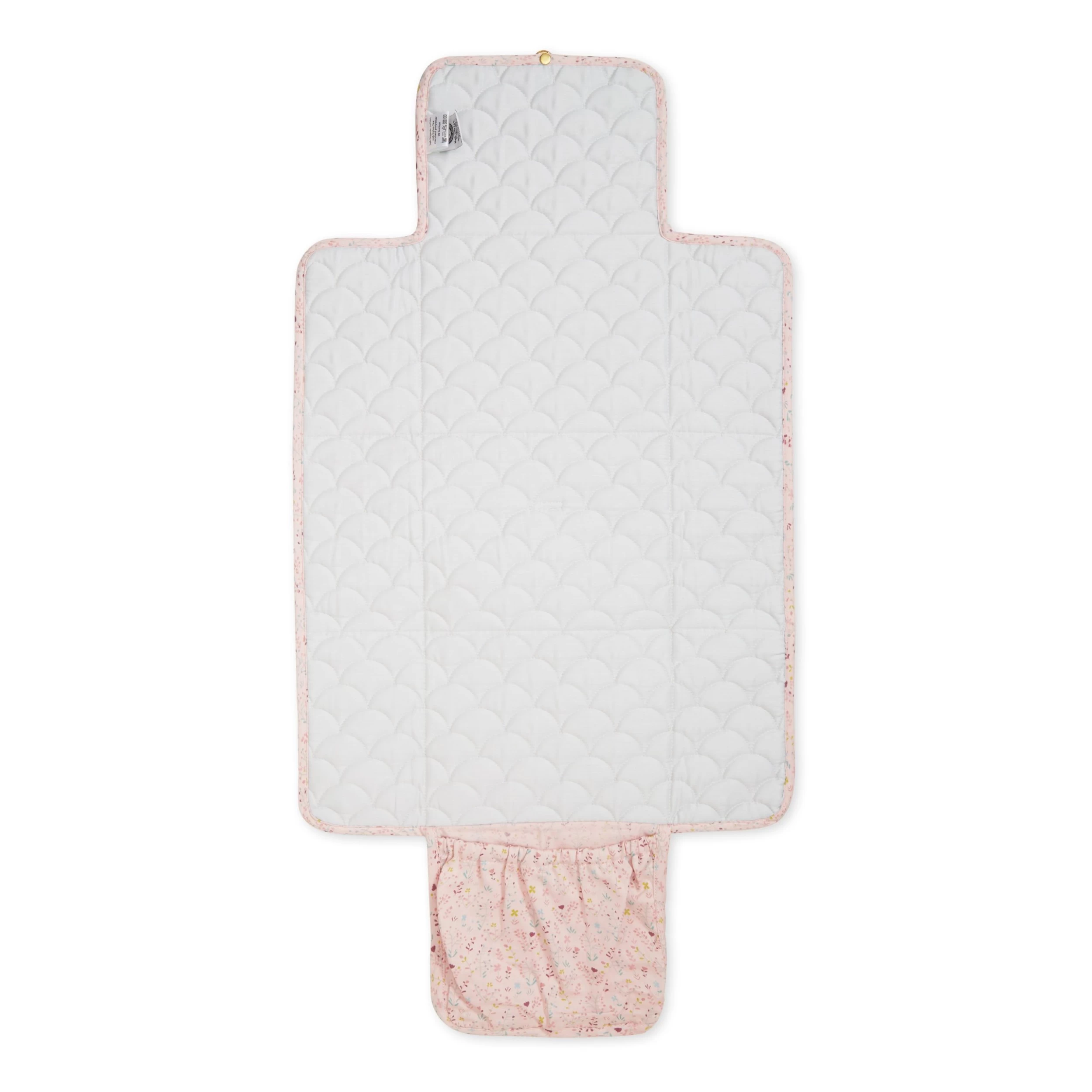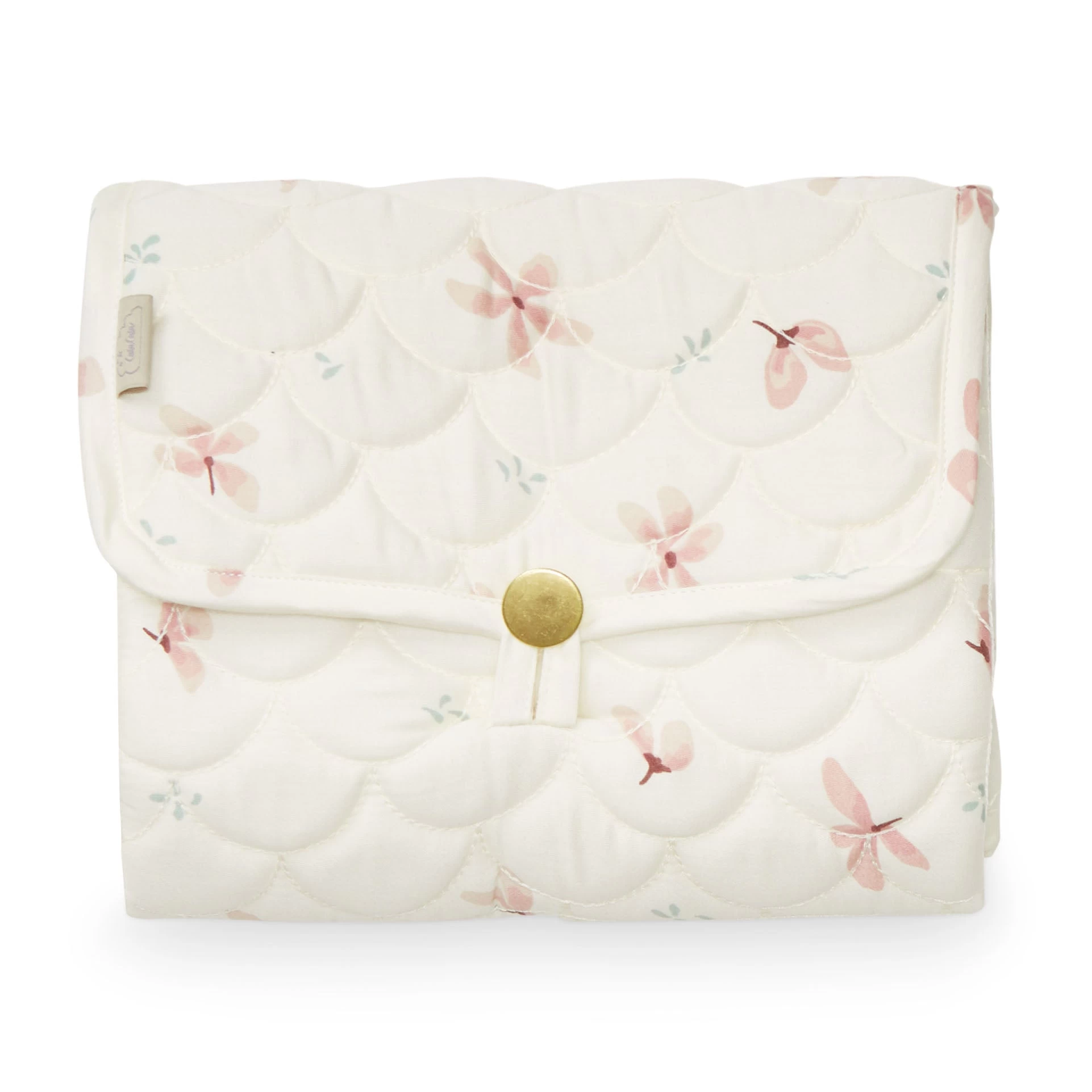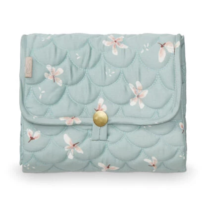 Cute and practical changing mat with beautiful wave quilt pattern – the mat is perfect for changing situations on the go. The mat is easily folded with one hand to a handy small size, that fits into the nursery/diaper bag. It has a practical pocket inside that fits a diaper and a muslin. The mat is coated on the outside to make it dirt and water repellent.