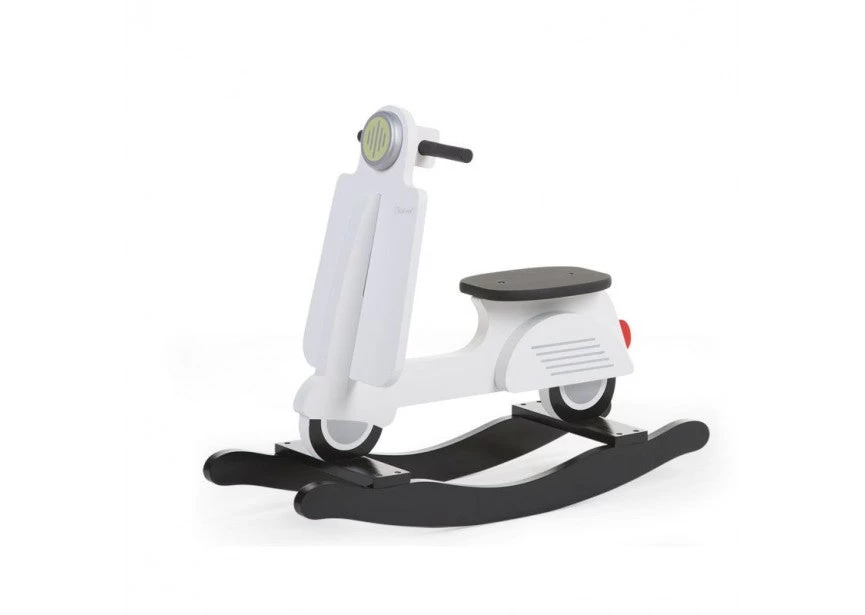 The rocking scooter will give your nursery a bit of European flair. The rocking scooter features long runners to minimize tipping so your child can rock safely for many years and is the perfect way to teach your little one balance and co-ordination.