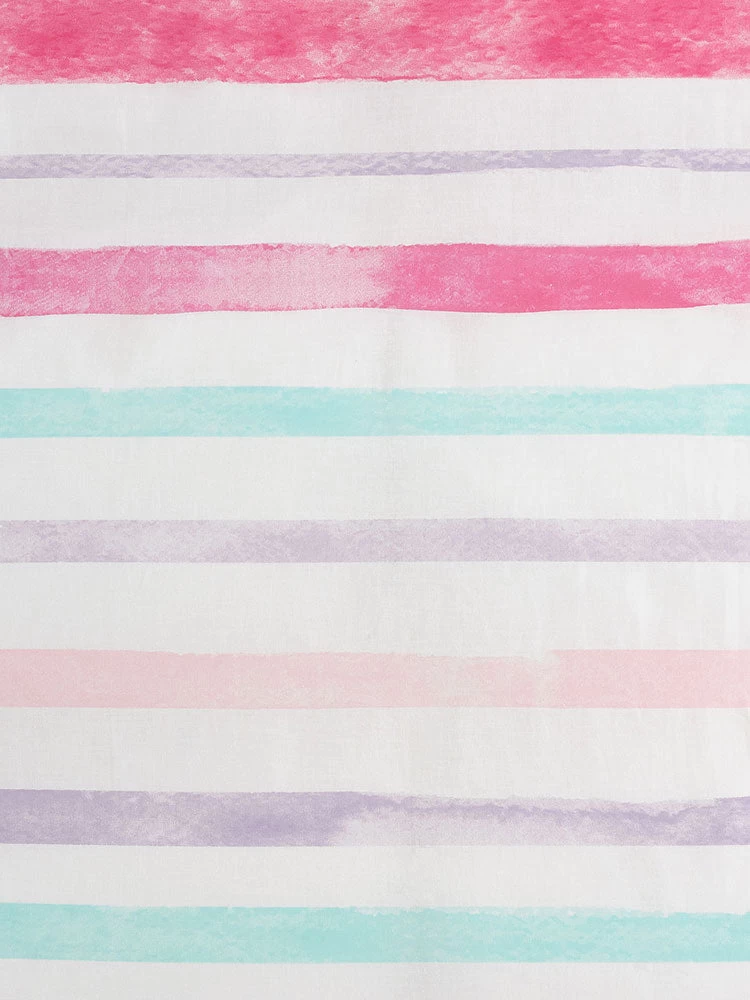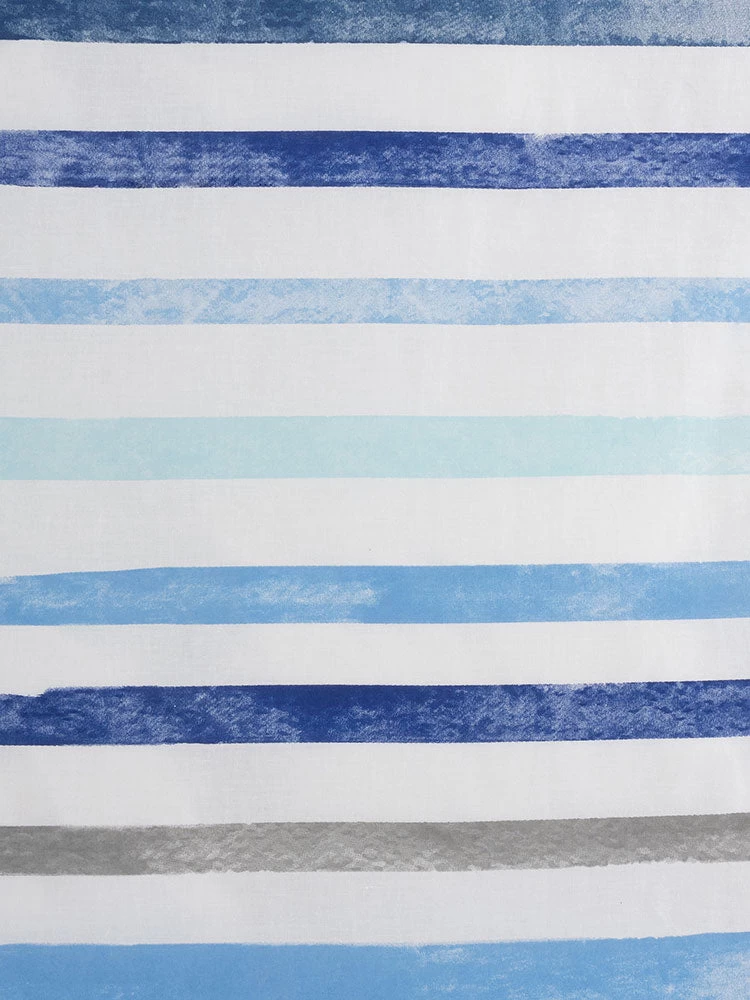 This animated horizontal stripe in a range of navy, aqua, and grey watercolor hues will add a fresh and vibrant look to your child’s bedroom. Contemporary and fun, this design is printed on 100% cotton and features the same print front and reverse.