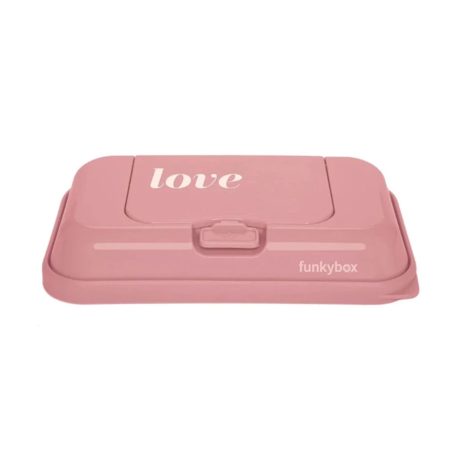 Funkybox is made of a high quality plastic. The lid of the box opens easy with one click on the button. The ring in the lid prevents the baby wipes from drying out. Easy for at home or on the go! Put Funkybox in the nursery, take it in your bag or keep one in your car.