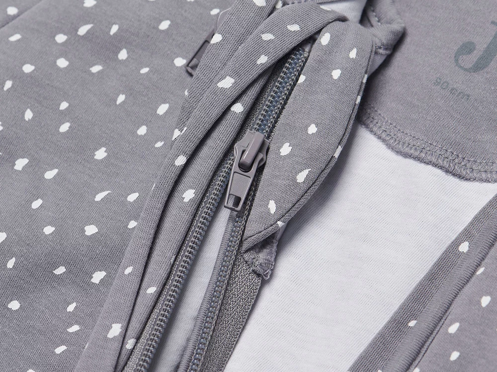 Nice 4-season baby sleeping bag from Jollein. The 4-season sleeping bag is made of cotton with polyester filling and is available in sizes 70 cm, 90 cm and 110 cm. The sleeping bag has a subtle print of whales and is available in pink and gray. The 4-season sleeping bag has a removable inner piece to adjust the thickness to the season. The TOG value of the 4-season baby sleeping bag is 3.0 when you use all layers, a TOG value of 2.5 when using the outer layer and a TOG value of 0.5 when using the sleeveless summer sleeping bag.