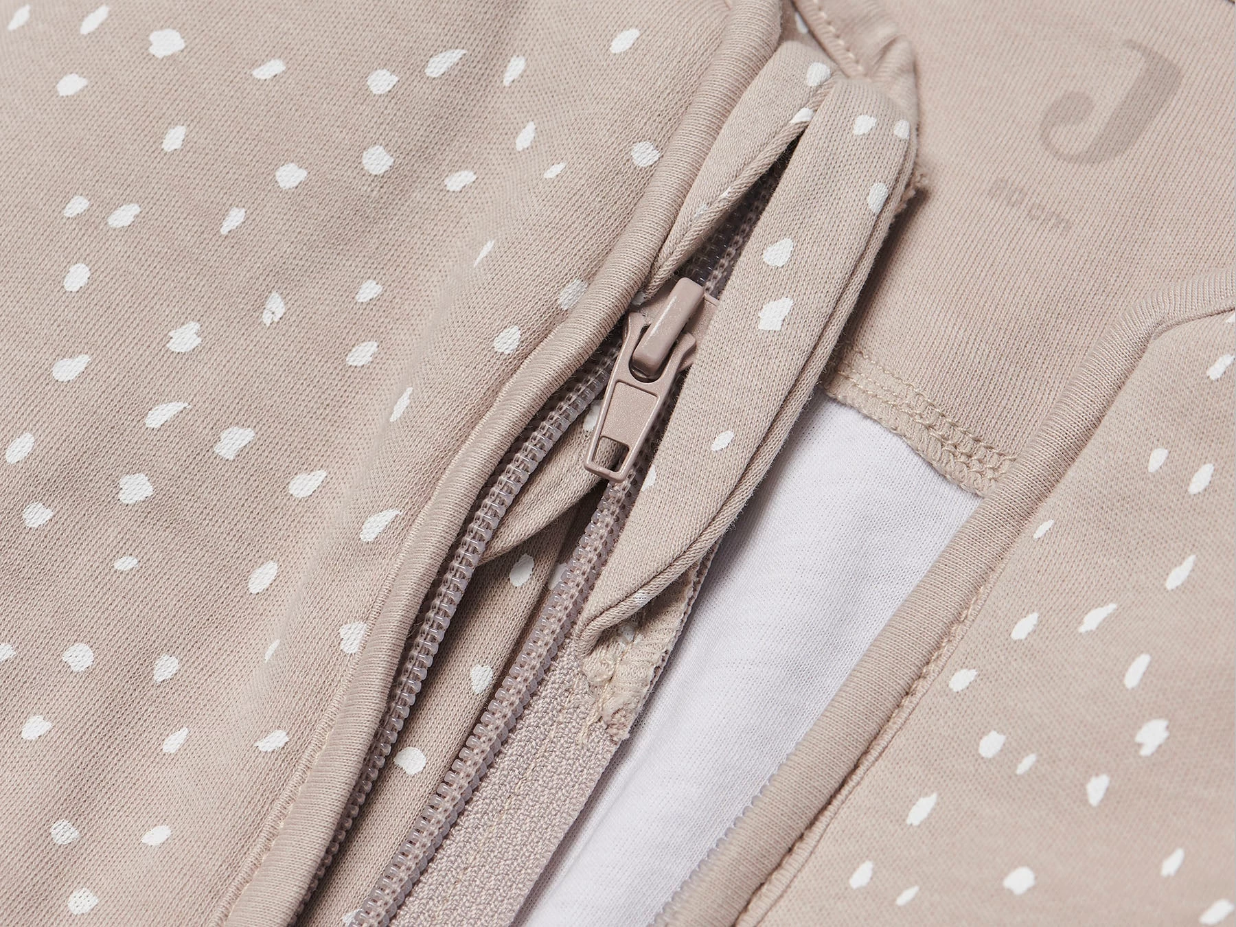 Nice 4-season baby sleeping bag from Jollein. The 4-season sleeping bag is made of cotton with polyester filling and is available in sizes 70 cm, 90 cm and 110 cm. The sleeping bag has a subtle print of whales and is available in pink and gray. The 4-season sleeping bag has a removable inner piece to adjust the thickness to the season. The TOG value of the 4-season baby sleeping bag is 3.0 when you use all layers, a TOG value of 2.5 when using the outer layer and a TOG value of 0.5 when using the sleeveless summer sleeping bag.