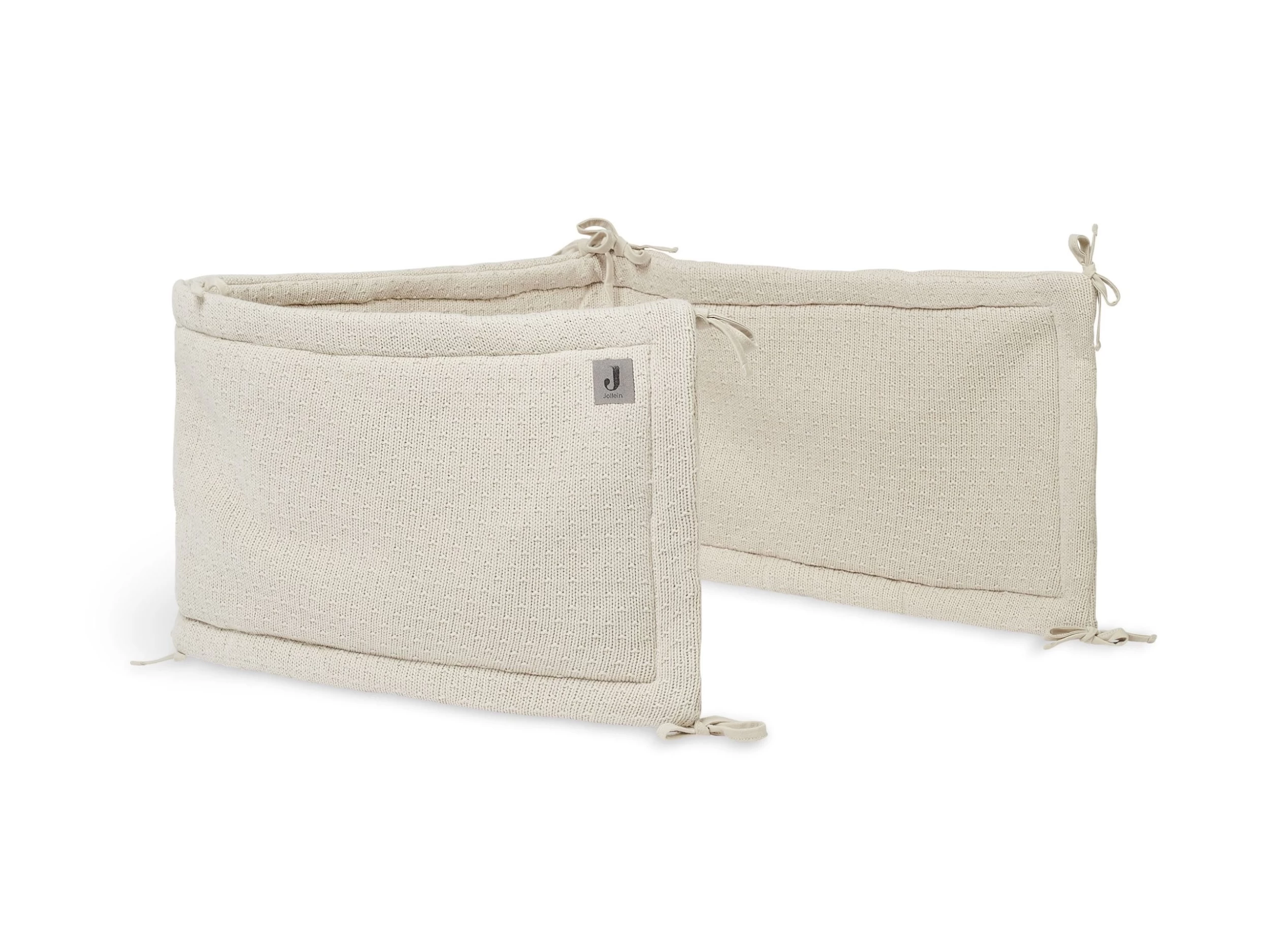The playpen bumper or bed bumper can be used on two sides. A soft fleece side or a nice knitted side. The knitted side has a recognizable pattern from Jollein’s Bliss Knit theme.
