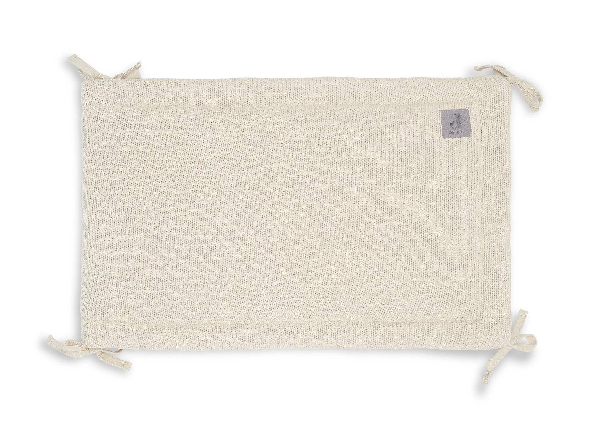 Do you also have a little one who is very busy in his sleep? With this bed bumper bumping your head on the hard bars is a thing of the past. The padded bumper is nice and soft and easy to attach to the bed or to the playpen. It is also very cozy and gives a sense of security. The box bed bumper can be used on two sides. A soft fleece side, or a nice knitted side. The bumper matches very well with, for example, the blanket or playpen rug from the River Knit theme.
