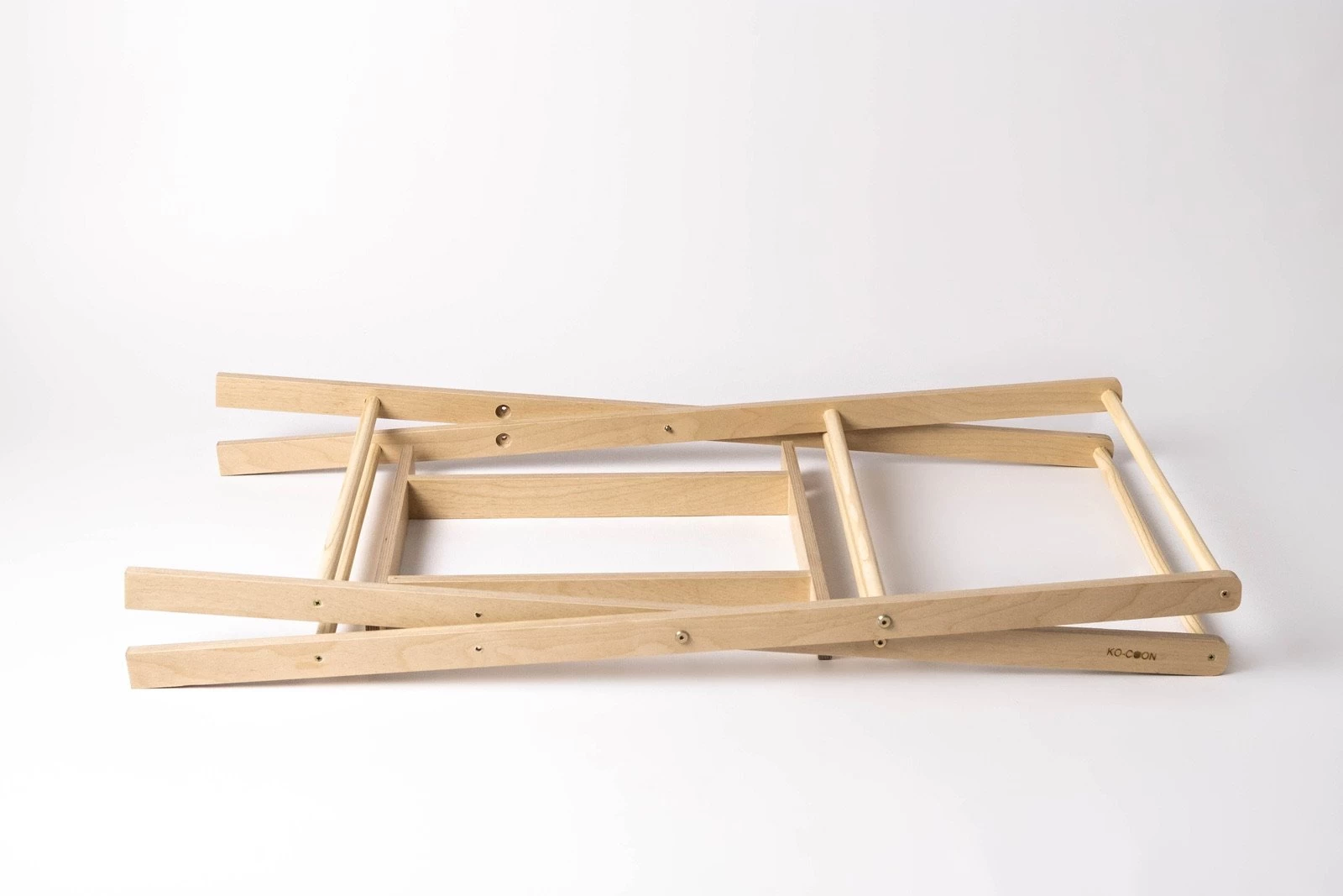 Made from birch, this stand perfectly holds Ko-coon Moses Basket, similar size bassinets or Moses baskets and allows for an easy fold and move around or storage.
