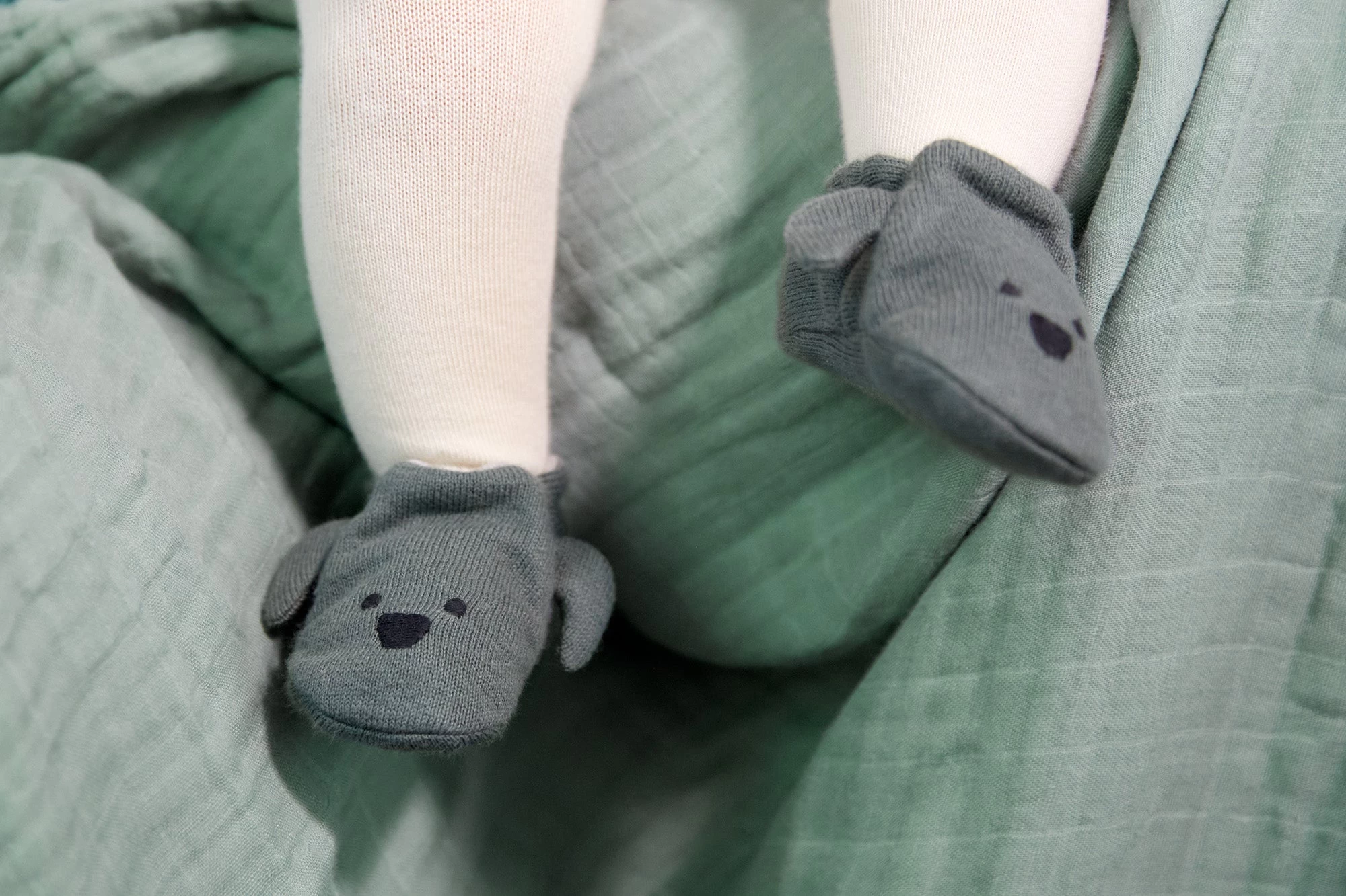 The baby shoes are neatly stowed away in the matching fabric bag made of 100% organic cotton, with a shiny print. Just like the tiny shoes, the fabric bags are also produced and certified according to the GOTS guidelines (Global Organic Textile Standard). They are a wonderful gift for a newborn.