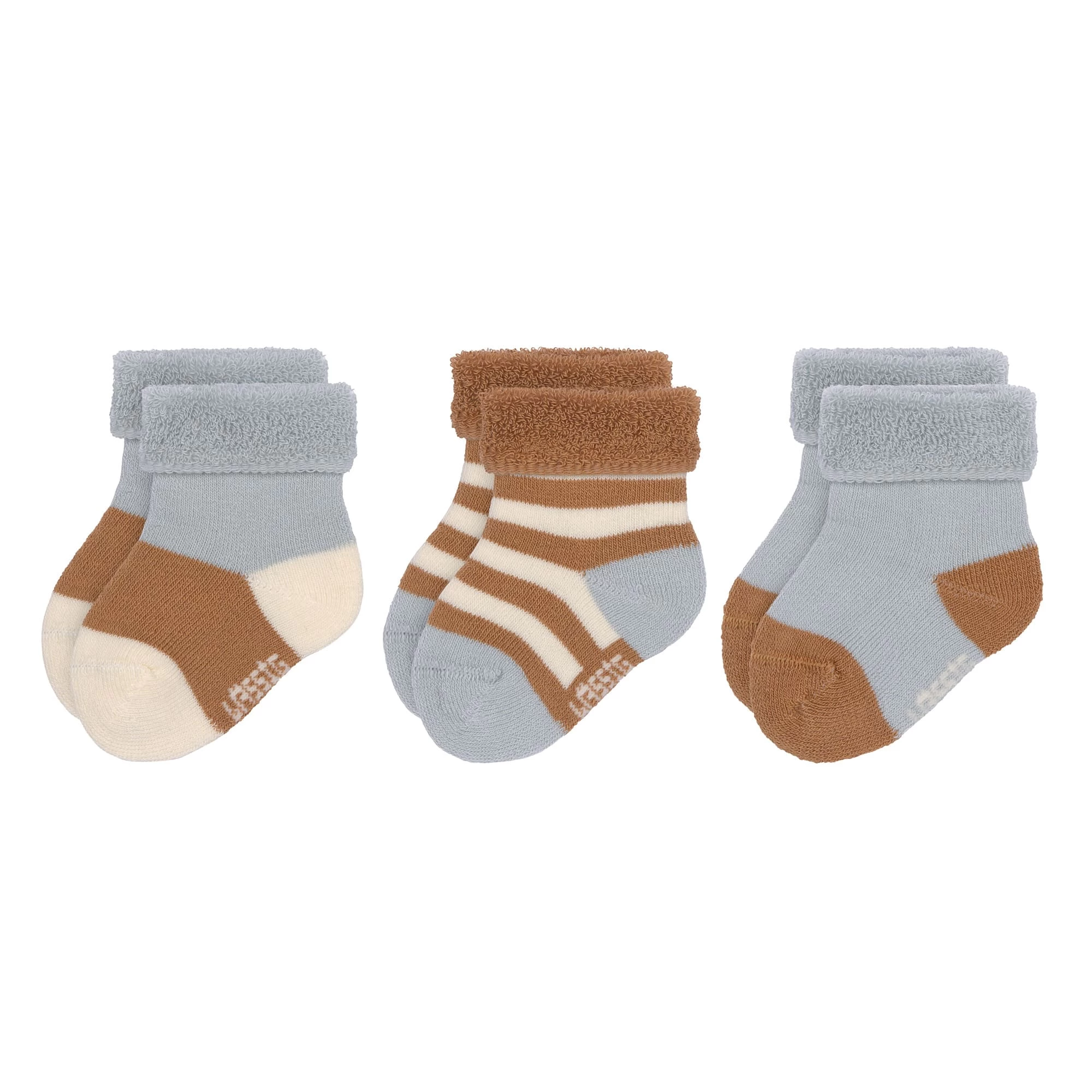 LÄSSIG’s pink socks for newborns are made of terry toweling fleece and keep tender baby feet cuddly warm from birth. The high proportion of cotton (organic), the turned-down band and the flat seams ensure they will be very comfortable.