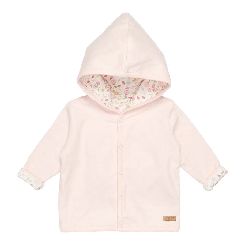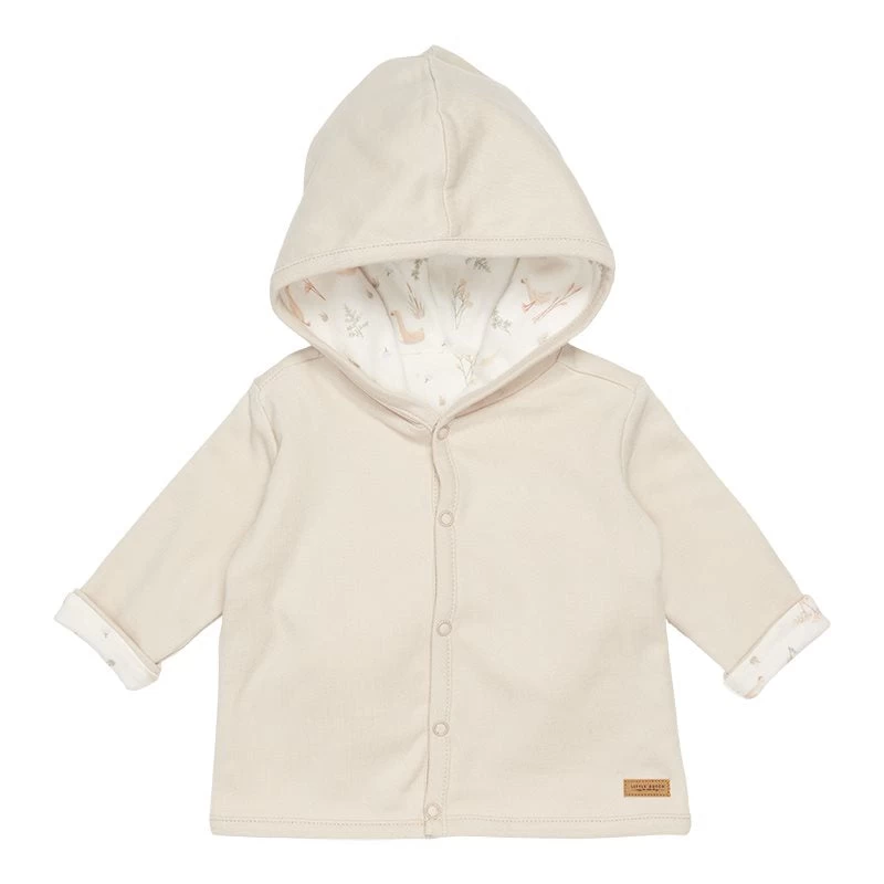Keep your baby warm in this reversible jacket made from certified organic cotton. This comfy style can be worn in two ways. One side is rendered in a color hue, while the other side features our signature print. The jacket has a hood and a front opening that easily fastens with five buttons. Complete with a cap on colder days.