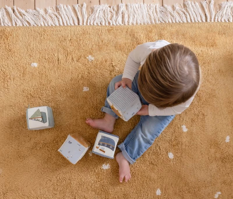 From feeling to grasping. Turn tummy time into a playful adventure with this set of soft activity blocks. The stackable set has a harbor-inspired theme and consists of 4 different blocks.