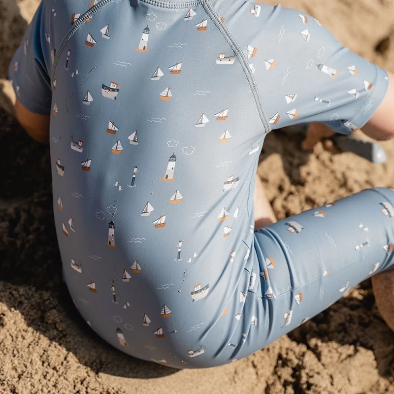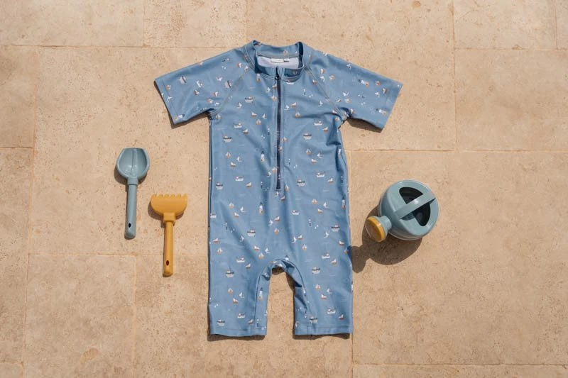 Let’s hit the beach! With this one-piece swimsuit of recycled polyester you are ready for some water fun and a long day in the sun. Whether you love jumping at the waves or enjoy building sand castles, you will definitely look as cool as a real surfer. This one-piece swimsuit with short sleeves will keep your little one warm in the water and protected from the sun. Thanks to the zipper on the front it’s easy to put on and take off. Even when your little one is wet and covered in sand. The swimsuit It is made from UV protective fabric and is available in sizes 62/68, 74/80, 86/92 and 98/104. Make sure to bring a beach poncho and a inflatable beach toy and you are ready to go. Don’t forget to always use sunscreen lotions to protect your little one.