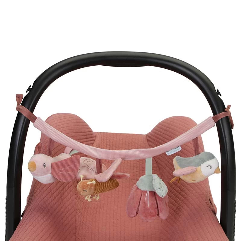 Rattle, beep, crackle. Give your child a sensory experience with this colorful stroller tensioner. With four different characters to watch and play with, hand-eye coordination development is encouraged. Simply attach the stroller tensioner to a car seat or stroller. Butterfly Lily, bird Olivia and sparrow Abby love to entertain your little one on the go.