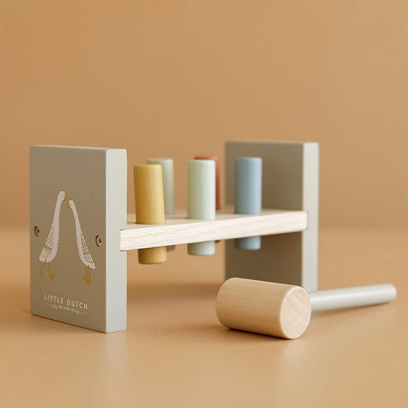 The wooden bumper bench is fun for boys and girls. Your child can hammer the pegs of one in one on this fun hammer bench. The 6 coloured pegs make it a great exercise for your child’s motor skills. Hammered on all pegs? Turn the bench so they can do it again. They’ll be entertained for hours!