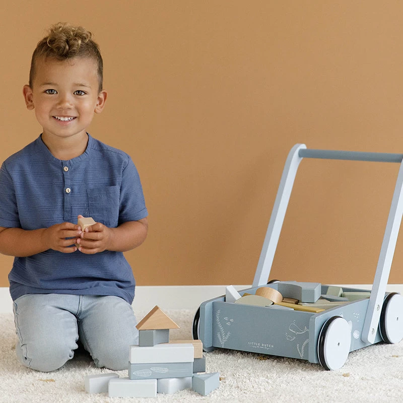 The handle is at the right height for toddlers so that they can comfortably walk around the room. This cheerful cart full of blocks guarantees hours of building fun.