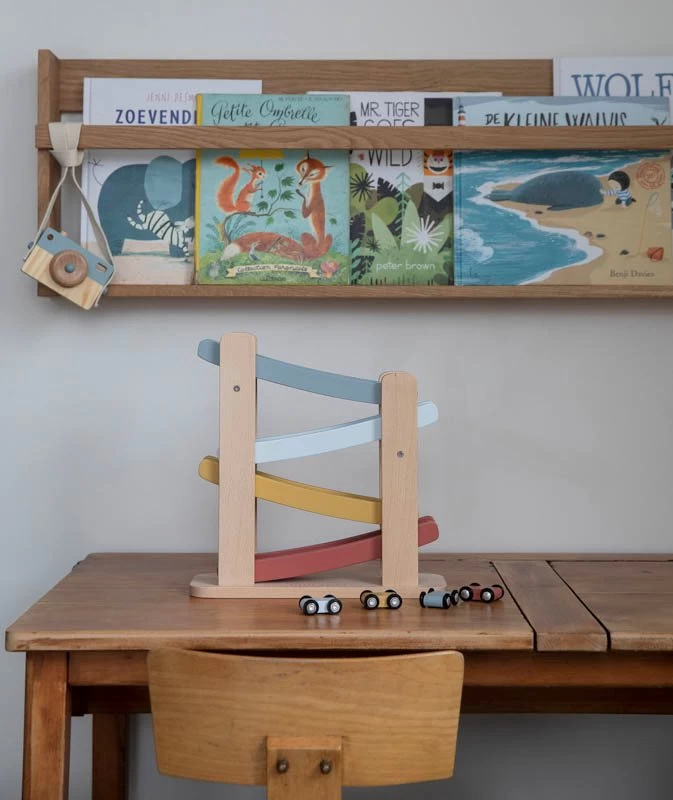 1, 2, 3, race! Children will have a great time with this wooden motorway from the Pure & Nature Collection from Little Dutch. Place the 4 included cars one at a time on top of the race track, release them and they race down the diagonal zig-zag tracks quickly down! Made from durable FSC wood, this toy stimulates children’s hand-eye coordination.