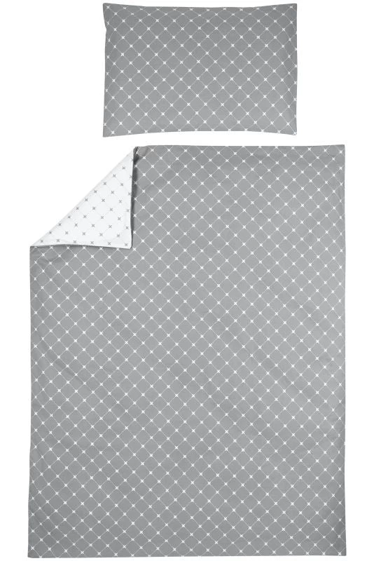 The Duvet cover is made from 100% soft cotton meaning your toddler will not get warm too quickly. The fabric allows for air to pass through easily and absorbs moisture. Your toddler will sleep nice warm, comfortable, and dry. The set consist of a Duvet Cover and a Pillowcase of 40x60cm.