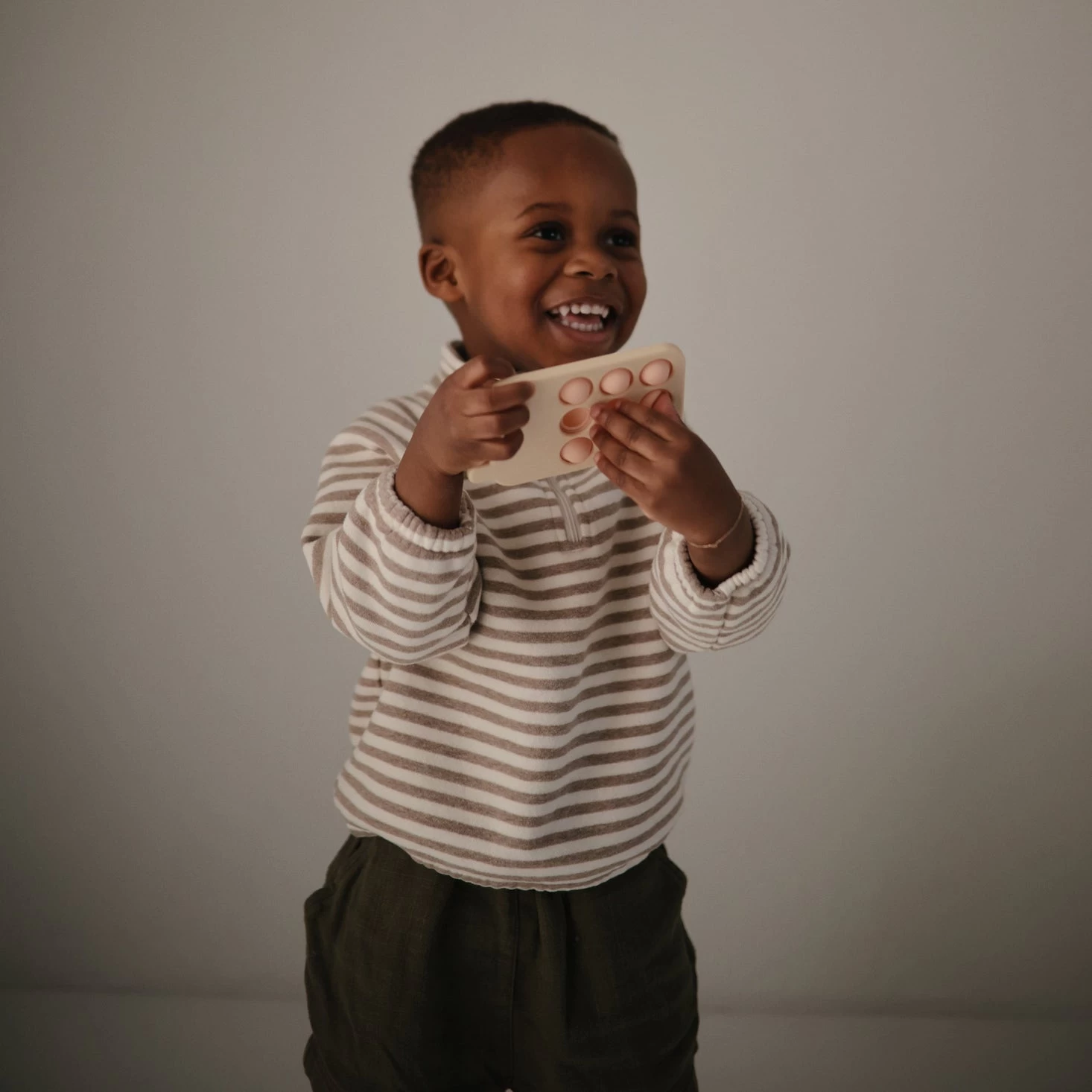 With its simple design and soft colors, our phone press toy encourages sensory exploration and fine motor skills development. Using food-grade silicone and a BPA-free plastic frame, children can tap into learning as they press the bubbles. With endless opportunities for play, this toy is inspired by technology and holds babies’ and older kids’ attention.