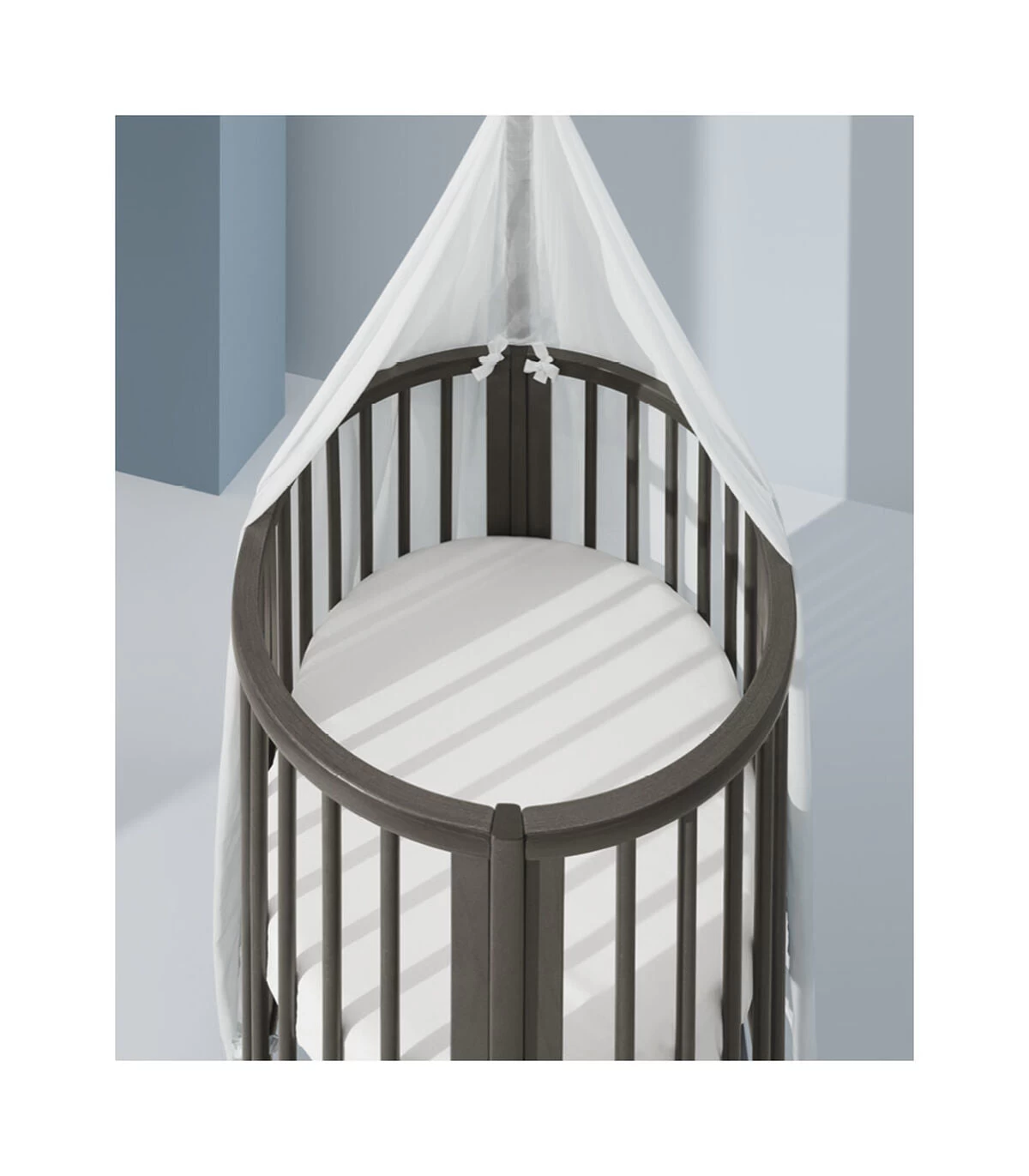 The Stokke® Sleepi™ Mini is the ideal first bed for your newborn. Creating a nest-like environment, it helps baby feel snug and secure. Soft oval design cocoons your baby offering comfort and familiarity for restful sleep and the sweetest of dreams. The drape rod and canopy make it a truly elegant addition to any nursery. Lockable swivel wheels can be used to rock your baby gently to sleep and makes your crib easy to move from room to room. At only 67 cm / 26,4 in inches wide, it’s amazingly space efficient, making it ideal for petite nurseries. The Stokke® Sleepi™ concept has been developed with sound sleep and safety in mind. It is available with a firm and breathable Sleepi™ mattress which exceeds the highest safety standards (sold separately). Accessorize with the breathable mesh liner and high-quality textiles. Stokke® Sleepi™ is FSC®-certified using responsibly sourced wood. FSC is a sustainable forest management solution. With this Stokke® Sleepi™ we help take care of the world’s forests.