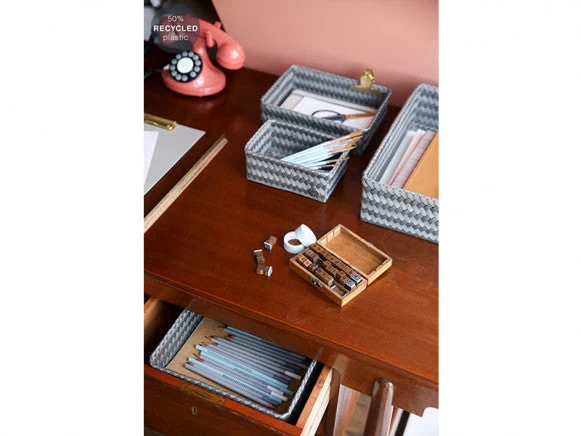 Handed By Basket FIT Medium High. This high storage basket can be used practically anywhere in the home.For the olive oil bottles and soap bottles on your kitchen counter or as a storage place for pens and pencils on your desk. Very practical if you don’t want to have things in your sight all the time. Size: H10 x W24 x D18 cm. Material: 50% recycled plastic.