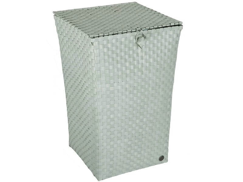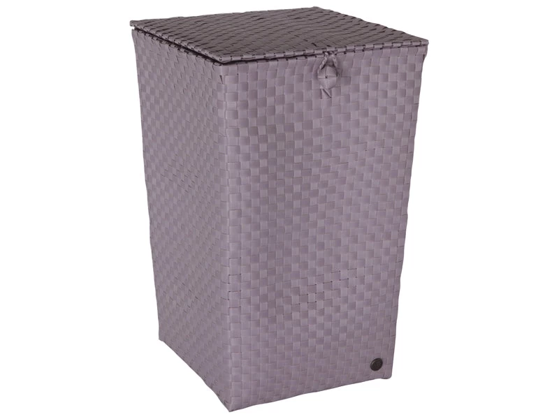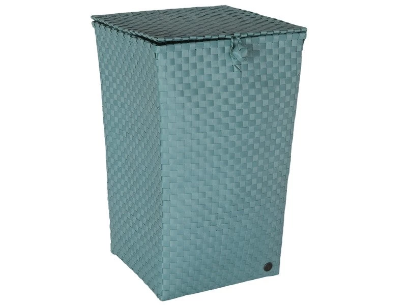 Handed By Laundry Basket VENICE. This sturdy laundry basket is made of strong plastic and has a lid that can be closed with a plastic knob. It has a reinforcing metal frame at the top. Height: 52 cm, width: 33 cm, depth: 33 cm. Material: plastic. Due to production, there may be slight color deviations. You can choose from more than 15 colours.