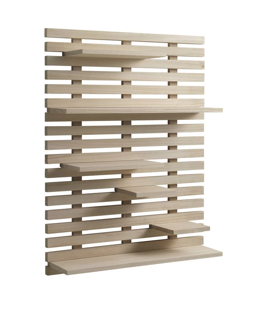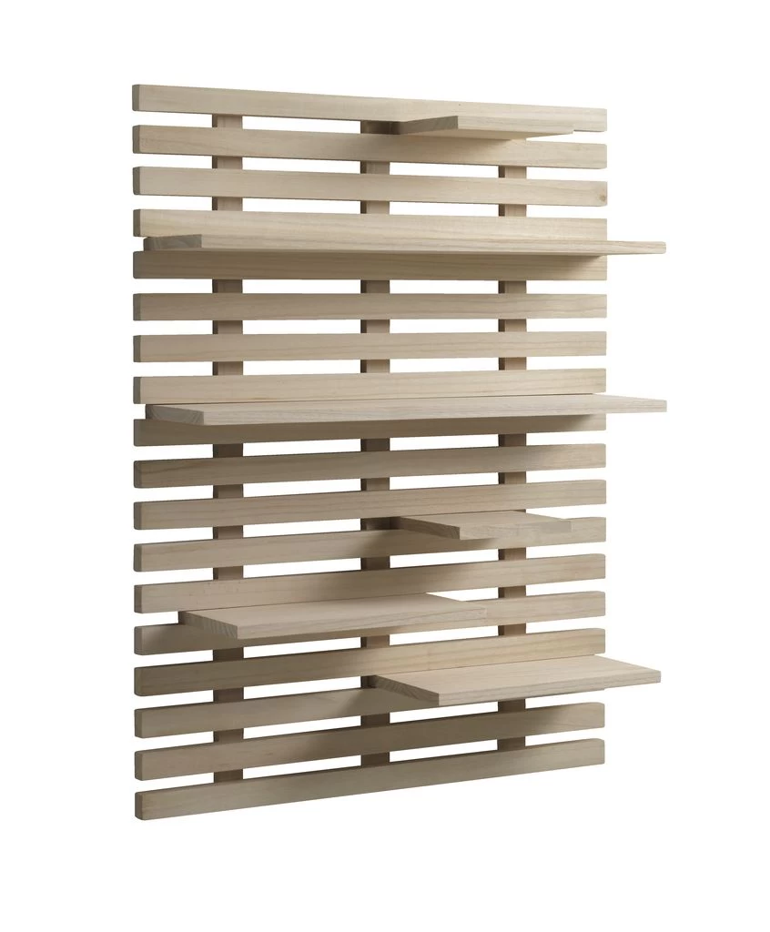 Solid wood. With 6 shelves, which can be placed as desired. W60 x H80 x D17 cm.